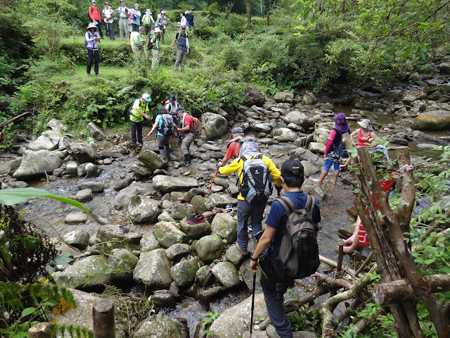 走入一段緩坡路,緩緩地爬升,尋找那一片的空地,成就午餐美食的方圓 ..... 領隊老顧,一馬當先勇闖未知的地界,我們,一步一步地緊跟著 .....